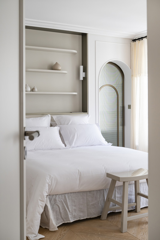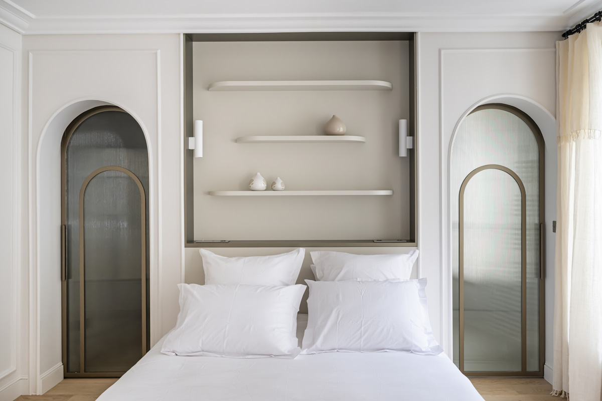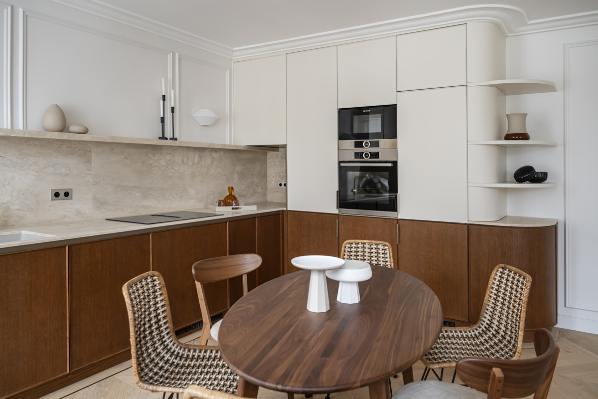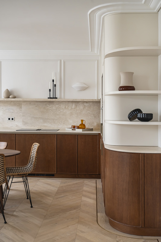 L’agence a rénové cet appartement parisien en lui redonnant son charme haussmannien : moulures, parquets et cheminées ont été recréés pour retrouver l’esprit d’origine. Les espaces ont été repensés pour créer une grande pièce de vie ouverte et des chambres avec dressing et salle de bain.