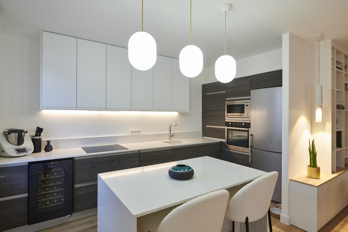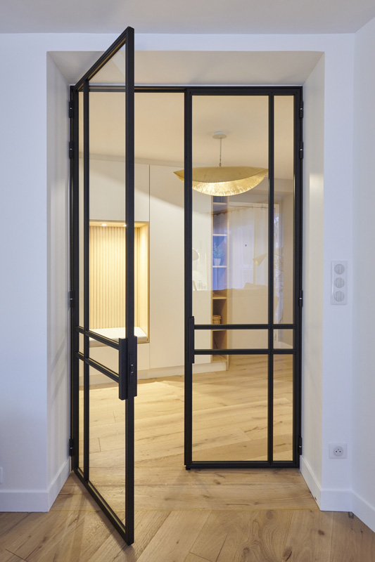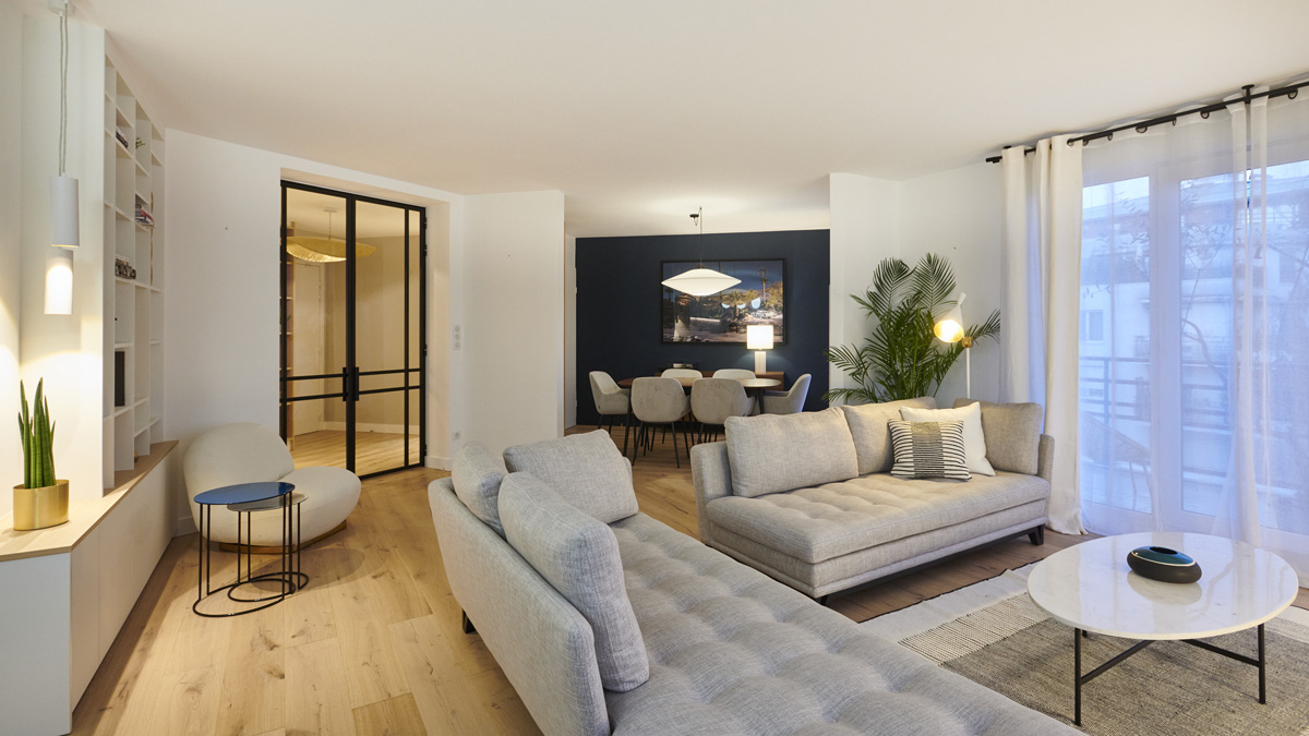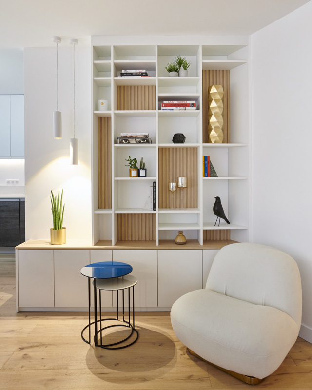 MIID a repensé cet appartement de 80 m² dans un esprit sobre et épuré, tout en conservant une atmosphère chaleureuse. Le parquet et les touches de bois, notamment dans l’assise de l’entrée, apportent douceur et convivialité à l’ensemble. L’équilibre entre simplicité, fonctionnalité et confort donne naissance à un intérieur élégant et fluide, pensé pour le quotidien.