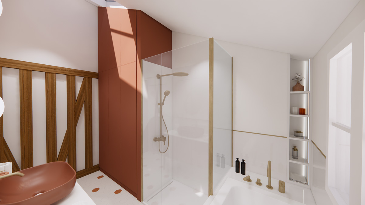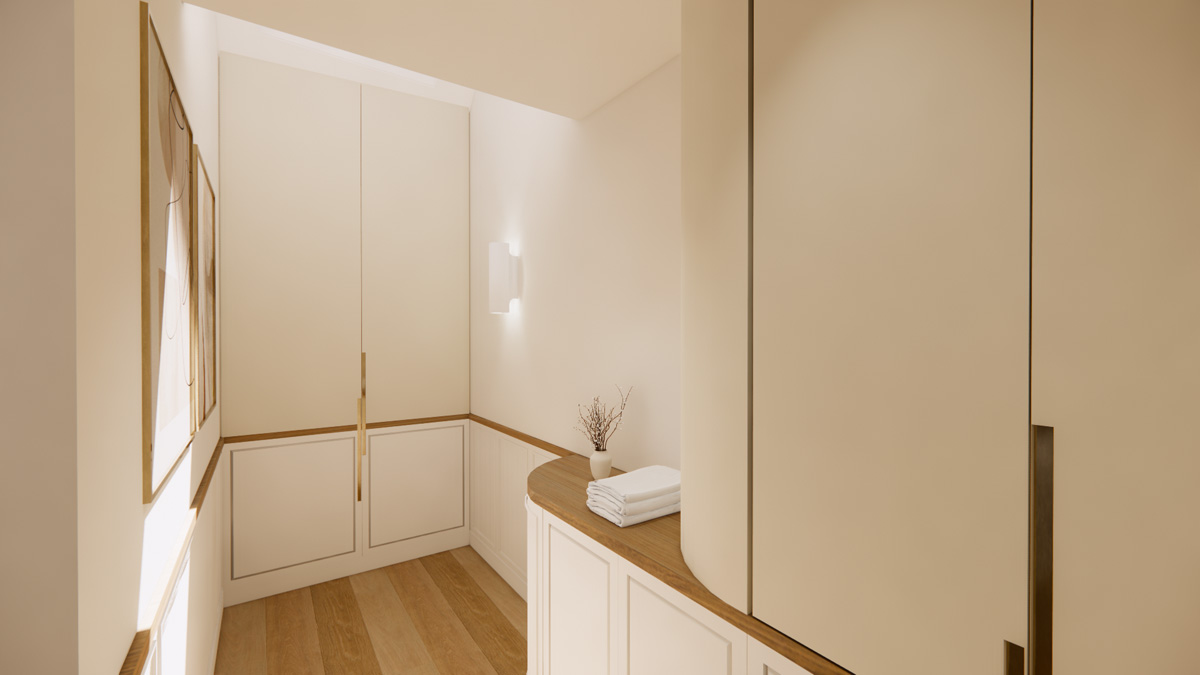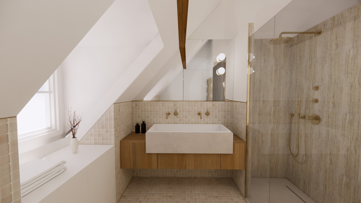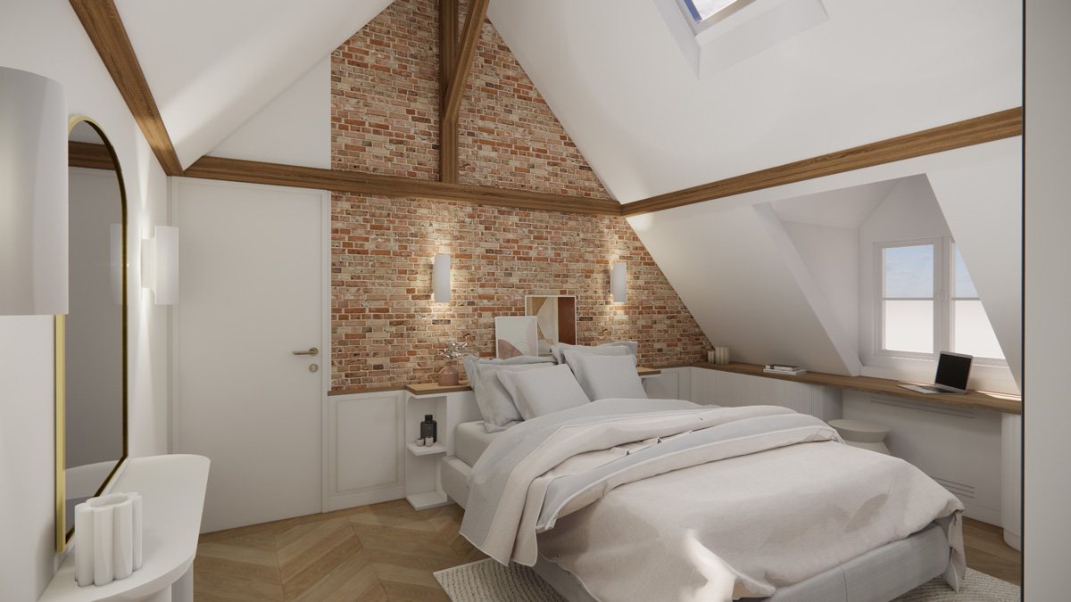 Le projet a été de rénover des chambres de bonnes situées au 6ᵉ étage d’un immeuble parisien, en réinvestissant les volumes sous toiture pour créer un espace type loft revisité. Le projet joue sur le dialogue entre l’existence de la brique et une écriture haussmannienne, afin d’ancrer pleinement ce lieu dans l’identité de son quartier, rue de Buci. L’ensemble compose un intérieur de caractère, où patrimoine et modernité se rencontrent avec subtilité.