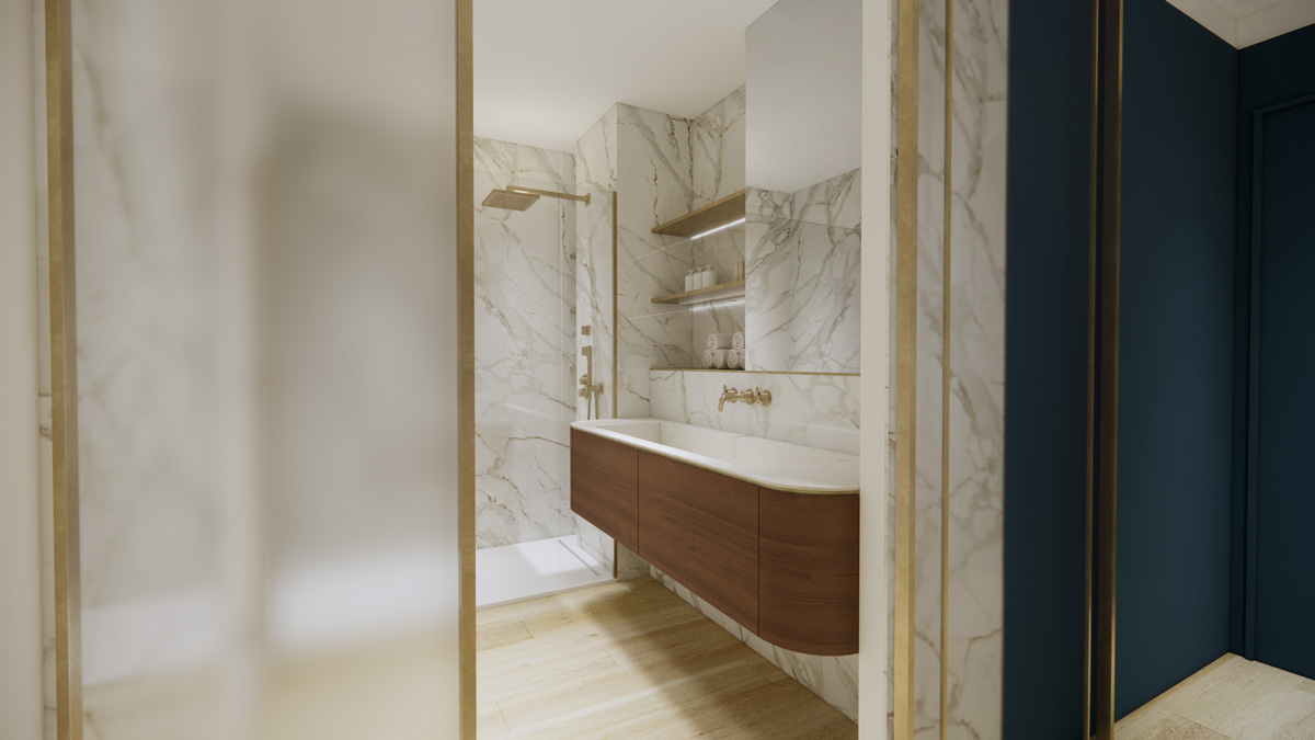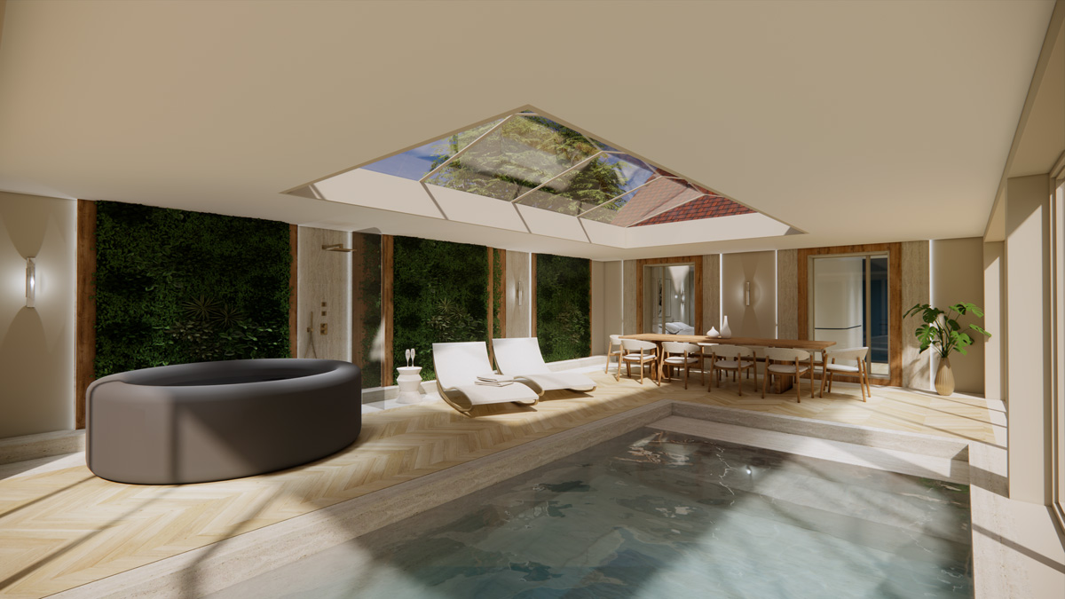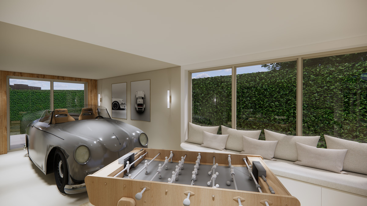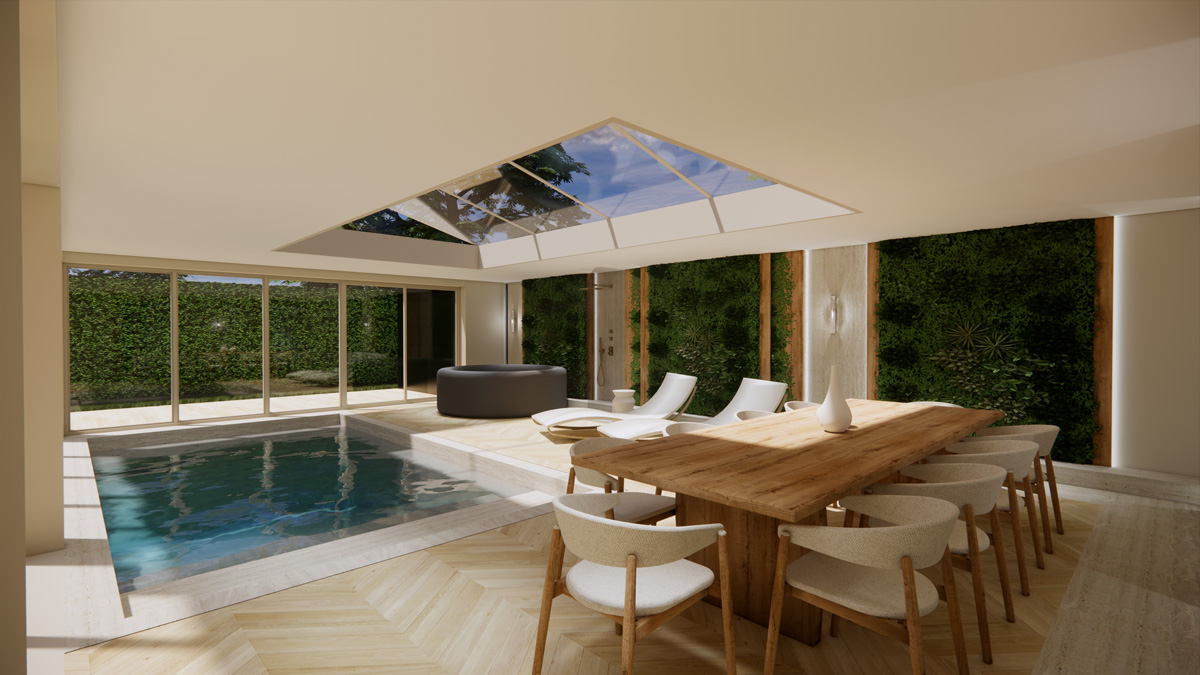 L’agence a retravaillé une maison familiale de l’est parisien, en intégrant une extension vitrée accueillant une piscine et un jacuzzi, ainsi qu’une cuisine extérieure. La maison sur deux étages comprend une grande suite parentale avec dressing, salle de bain et espace nuit donnant sur la piscine ; une chambre d’amis, ainsi que deux chambres d’enfants à l’étage. La partie garage a également été repensée pour accueillir une voiture de collection.
